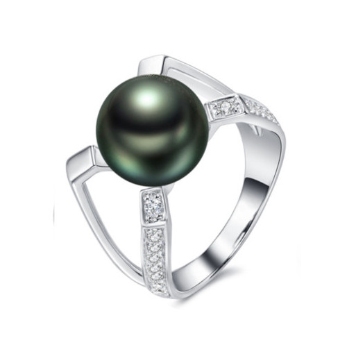 | Anello in Argento 925 zirconi e Perla di Tahiti 9-10 mm verde bronzo AAA | ||