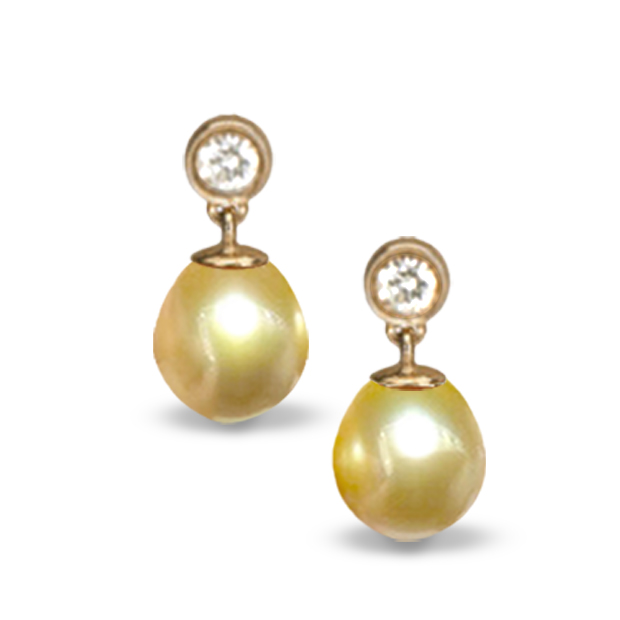 | Orecchini oro18k diamanti perle Drop dorate delle Filippine AAA | |