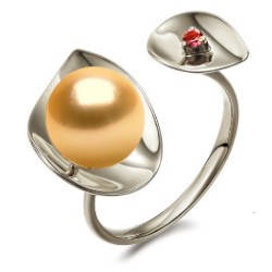 Anello Argento 925 perla dorata delle Filippine 9-10 mm AAA e tormalina rossa