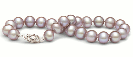 Braccialetto 18 cm composto di perle di coltura di acqua dolce di colore naturale lavanda, 7-8 mm, qualità AA+ , fermaglio oro bianco 14k, PREZZO PROMOZIONALE!