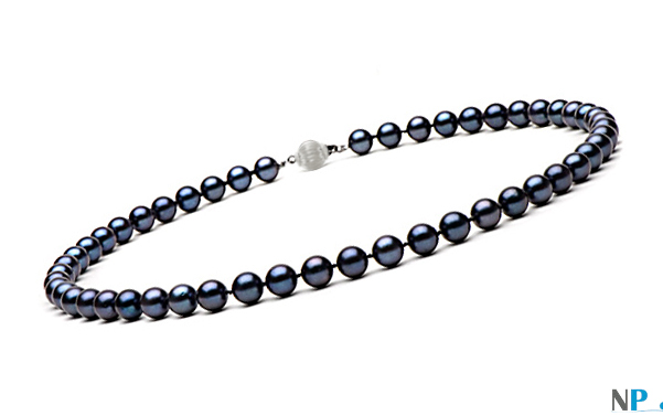 Questa collana è di un'eleganza straordinaria e attira, in ogni istante tutti gli sguardi. Il diametro di circa 7.5 mm fa di questa collana un gioiello di alta gamma. Le perle sono di grande qualità AA+. Perle di colori scuri, con riflessi blu notte.