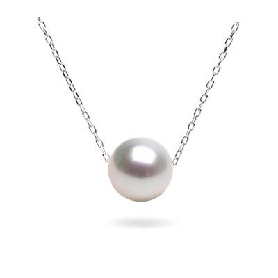 La catenina attraversa la bellissima perla Akoya perfettamente rotonda, qualità AAA, con foro passante, lustro brillante.