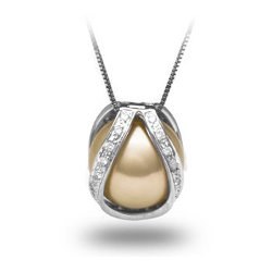 Gabbia oro e diamanti con perla delle Filippine Dorata non forata AAA